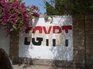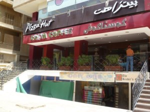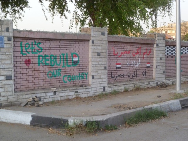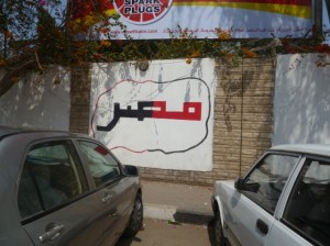 Julie and I walked around town today, for the first time since our return to Egypt. We were eager to see the changes in our area after the revolution, and took our camera along to share our observations. Much, of course, was the same, but there were many reminders that things have changed. First, the graffiti: