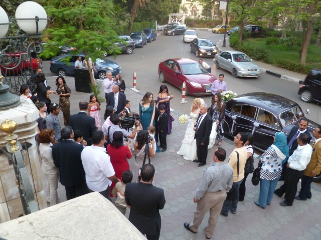 As we waited for more people to come, we watched the road for signs of the bride’s car. Emma and Hannah practiced their Egyptian wedding call, which is called the “zigruut.” It involves moving your tongue back and forth inside your mouth very rapidly while making noise. I’m sure they will be experts at this by the time they are 8, if not earlier.