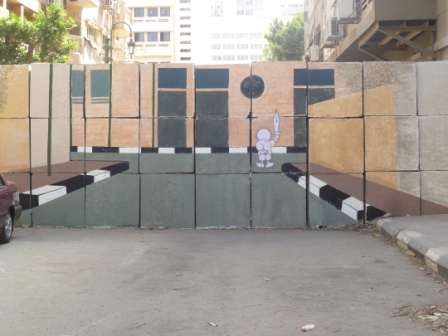 On March 9 revolutionaries decided to take a different tack, launching a campaign called ‘Drawing through the Walls’. Artists chose the day to set upon the erected barriers with brush, paint, and stencil. Beginning on Qasr al-Aini Street, across Sheikh Rihan, and down the now-(in)famous Mohamed Mahmoud, here is a collection of their work: