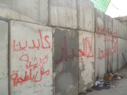 Over the past several months the military council has erected massive stone barriers during street confrontations around the Interior Ministry near Tahrir Square. They have meant either to separate revolutionaries and police forces engaged in pitched battles, or, as a preventative measure to block the path to the ministry itself.