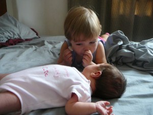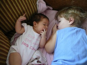 Presently, Hannah is sucking her thumb now more than a few months ago. I think it has something to do with the presence of a new little someone in our house. Hannah loves her sister, Layla, and the pictures below will attest to that. One of Hannah’s favorite activities right now is to lay next to Layla and just watch her, all the while, sucking her thumb. I’m not sure if Layla will learn from that! But, while Hannah loves her new baby sister, it is also a big change for her, and has brought with it some insecurity which her thumb helps her replace. So for now, I don’t mind her using her thumb for some extra comfort. But as she gets more and more love from us, and her new sister, I hope that she can gradually let go of her thumb.