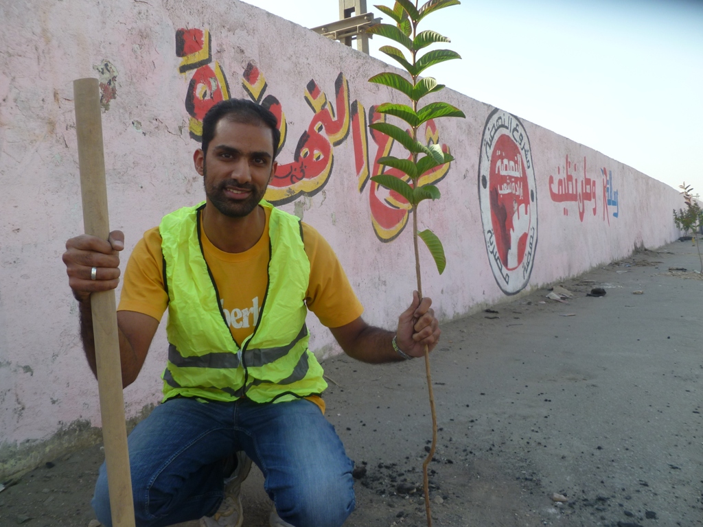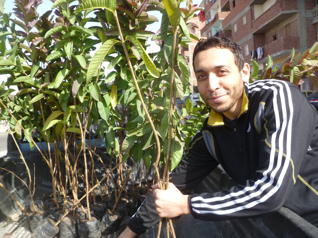 To do so, the Brotherhood is planting one million sapling trees throughout Egypt, one hundred of which are in Helwan. Kamal led teams of youth digging holes in the limited dirt of the urban landscape, boring even into the sidewalk.