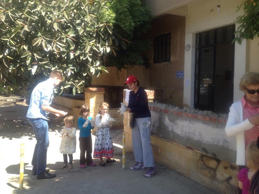 Getting ready (from the Facebook page)Perhaps more effective than the children, but less inspiring (from Facebook)First the streets needed to be sweptThen the curbs of Road 73 were paintedOthers painted over recent graffiti sprayed on the walls of local residencesThe local trash collectors lent their aid (from Facebook)Then we walked down the street to start again