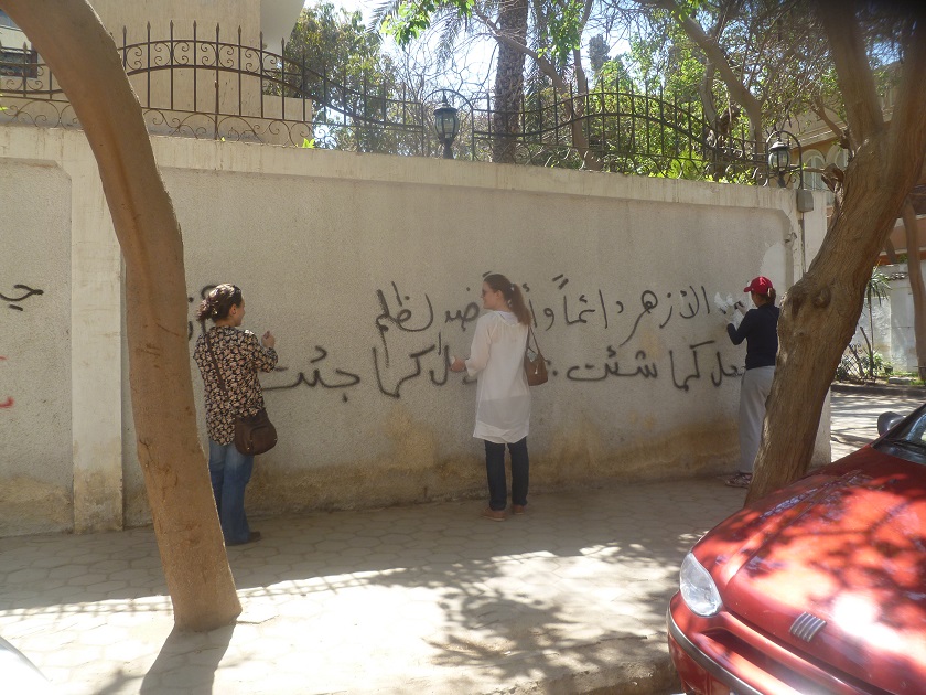 Following the success of the January 25, 2011 revolution, Egypt witnessed a great wave of civic activism. One of the most popular manifestations was in campaigns to clean the city streets, often accompanied by vibrant artwork and pro-Egypt graffiti. But as the enthusiasm waned and the political situation became more and more polarized, citizens went back to their lives as normal. Worse, the official public services of police and trash collection broke down as main streets were transformed into garbage dumps. Every now and again a faithful public servant or enterprising resident might try to clean things up, but it was a losing battle nationwide.