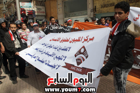 (translation: The Million Center for Human Rights – No to violence among the children of one homeland… No to forcing the Copts to vacate their homes… No to traditional reconciliation sessions…)