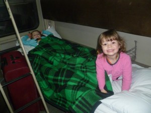 Since we left town around 8pm, we got our girls to bed as quickly as possible, anticipating a 5am arrival in Luxor. Then we enjoyed a good dinner before retiring to our different beds. I don’t think I slept too much and among the adults, we got varying hours of sleep. The beds were comfortable enough, but the train was really rough. We stopped and started all through the night, and felt like we were going to blow right off the track at different points. About an hour before Luxor, we got some breakfast, then woke and dressed the girls before arrival.