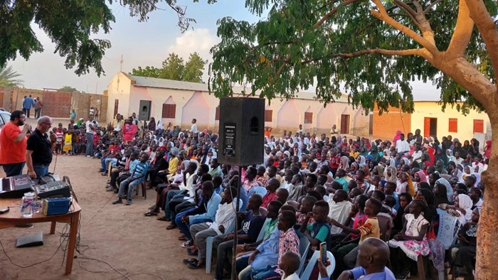 An outdoor YFC youth meeting in al-Thawra near Wad Madani, Sudan